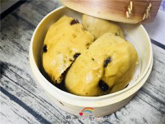 红糖发糕。红糖:35克,开水:60克,冷水:60克,酵母:3克,高粉:160克,蔓越莓:适量。红糖加开水化开,再加放冷水,把红糖水过筛到面包桶里。加入酵母,高筋面粉,开始揉面