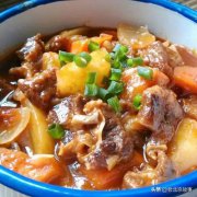 土豆炖牛肉 用料 牛肉(牛腩)1000g、土豆2个、洋葱2个、西红柿4个、胡萝卜1个、葱姜适量、老抽,料酒各1大勺、醋,糖1小勺、番茄沙司,黑胡椒,油 盐适量 做法 1.牛肉切块冷水下锅