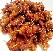 孜然牙签肉 食材:猪颈背肉、油、生抽、盐、花椒粉、淀粉、孜然粉、辣椒粉 做法: 1、肉切合适大小地块,加生抽,盐,花椒粉用手抓匀,腌制30分钟; 2、然后加入淀粉拌匀,用牙