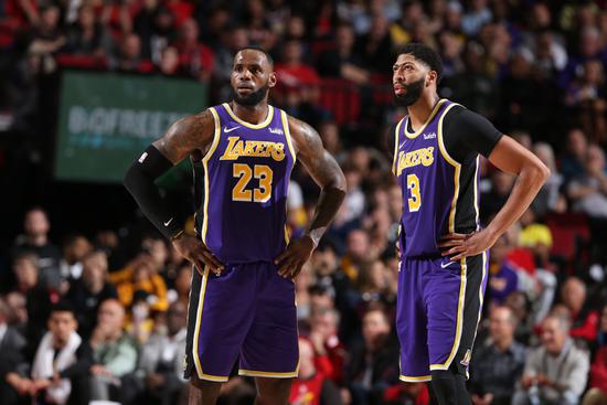 NBA常规赛,洛杉矶湖人对阵明尼苏达森林狼。湖人双星勒布朗与戴维斯在比赛一开始就找到默契。