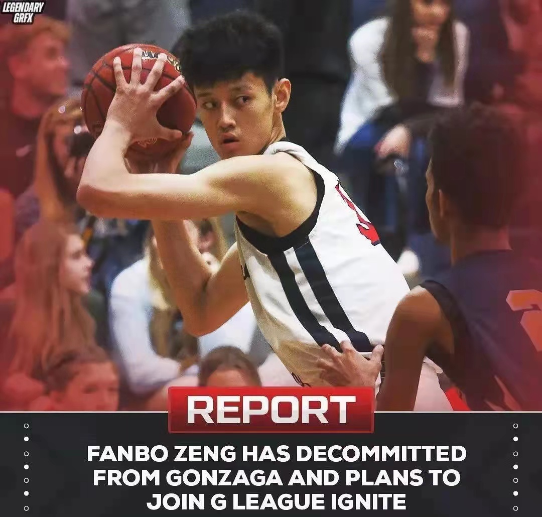 北京时间4月25日,据NBA名记Shams报道:中国顶级年轻球员曾凡博将不会前往冈萨加大学,而是计划加入NBA发展联盟的点燃队。