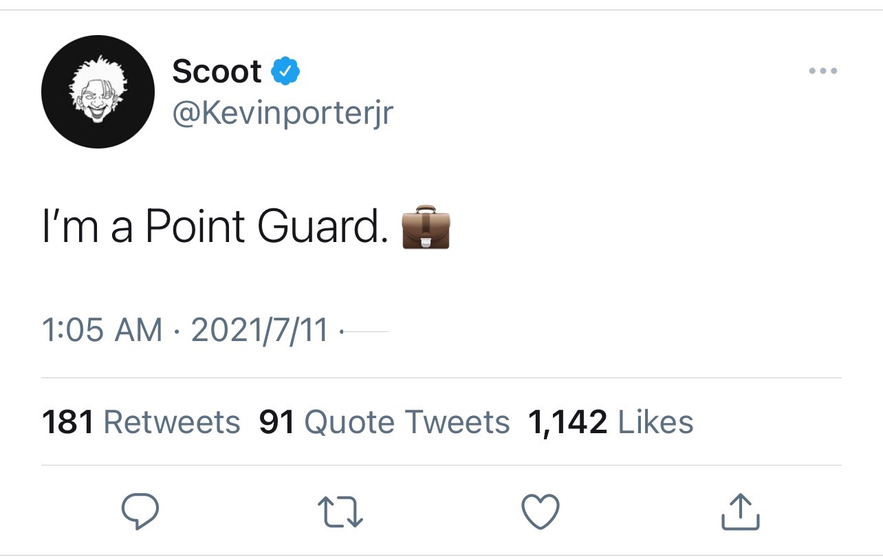上个赛季火箭队一个二轮签换来了小波特,加盟火箭队之后状态出色场均能够拿到16+6的数据,也曾单场有过50+10的表现。他在火箭队的半个赛季完成了蜕变,从被下放到毒蛇队再成为了火箭队的希望之星。小波特在休赛期也是很努力的在训练,他本人也很有信心在社交媒体上发文表示自己是一名控球后卫,显然他这是摊牌了。