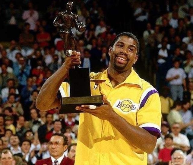 1980年总决赛,由于当时湖人主力贾巴尔脚踝受伤,于是在双方第六场比赛,当时还是新秀的魔术师自告奋勇出任中锋,顶替贾巴尔。而那场比赛,魔术师宛如天神下凡,狂砍42分15篮板,帮助球队击败76人拿到总冠军,因此,魔术师也以20岁的年龄,当选了NBA历史最年轻的FMVP,这一项纪录,未来很长一段时间也不可能被打破。