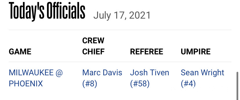 然而,就在本场比赛开始前一个小时,NBA官方突然宣布,原本要执法总决赛G5的裁判肖恩-赖特因违反健康与安全协议,将缺席今日比赛,詹姆斯-威廉姆斯将顶替其吹罚本场比赛。