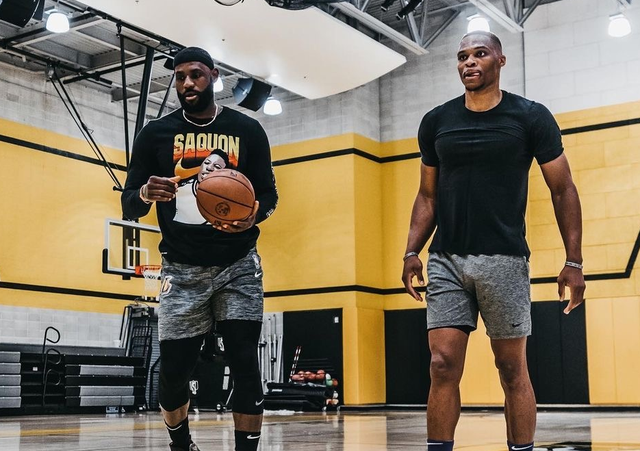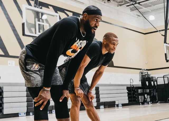 今日,詹姆斯在社交媒体上发布了几张他和威少合练的照片,这是两人成为队友后首次同框训练,陪练的是跟詹姆斯有过多年合作的助教菲尔-汉迪。老詹还了一段文字:“我同意,我不觉得这会奏效”,并且艾特了威少,也夸赞了汉迪。老詹这段话显然是在讽刺外界认为威少不适合湖人的说法,讽刺那些认为他们会失败地说话,往往詹姆斯在社交媒体上透露出这种情绪的时候,都是他要认真的时候。