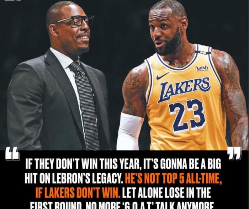 在接受采访时,皮尔斯谈到湖人队,说,如果湖人不能在新赛季赢得冠军,詹姆斯将不再是历史前五的球员。