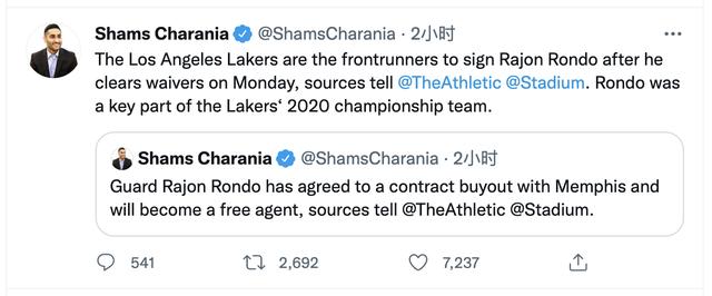 而据美媒沙姆斯-查拉尼亚的说法,朗多在获得豁免后将有可能加盟老东家湖人,需要注意的是,朗多曾在2020年季后赛帮助湖人夺下总冠军奖杯。