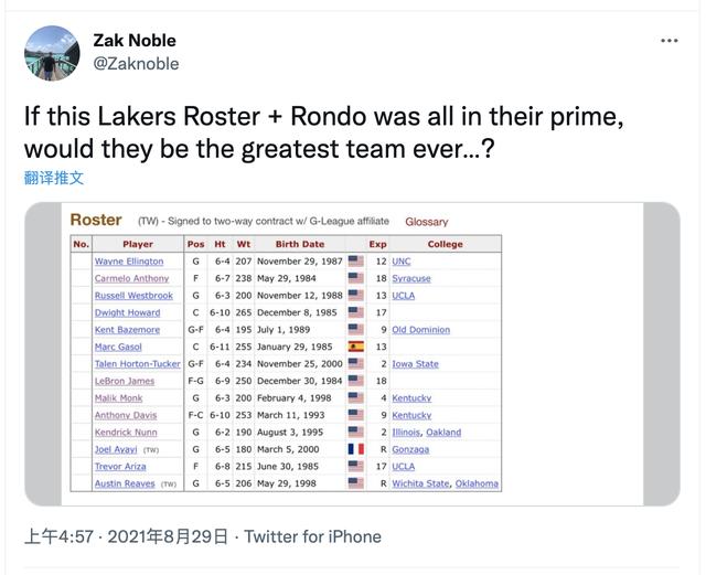 这确实是非常有趣的论点,如果湖人阵中球员都身处巅峰期,那么他们也将成为拥有詹姆斯,戴维斯,威少,安东尼和霍华德这种级别首发阵容,此外替补席上还有小加索尔,朗多,阿里扎和艾灵顿等球员的存在,说实话这支湖人会成为至少7巨头级别的球队,这样的球队毫无疑问就是联盟历史最强的存在。