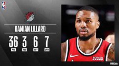 虎扑12月21日讯NBA官方评选出了今日比赛的最佳数据,开拓者后卫达米安-利拉德以36分3篮板6助攻并且命中7记三分,成功当选。 在今天和魔术的比赛,利拉德手感出色,全场21中13,三分