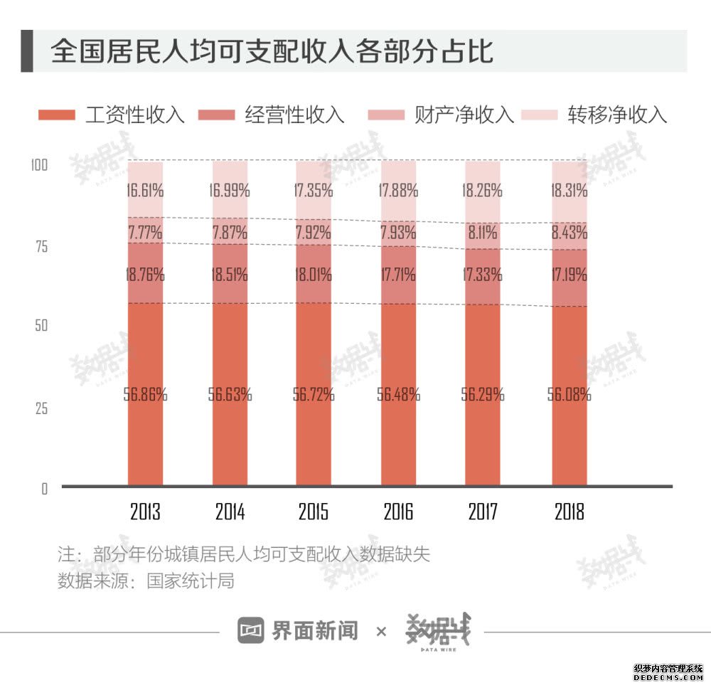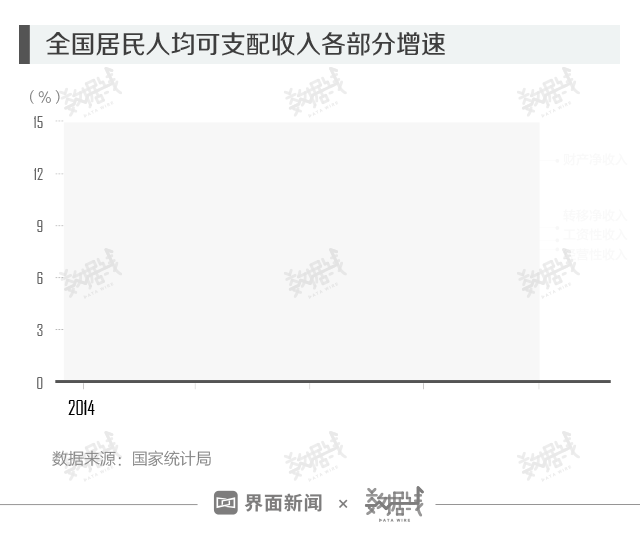 与此同时,自2013年起,城镇居民财产净收入大幅提升。在2017年,全国居民财产净收入增速已超过其他各项收入。
