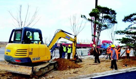 近年来,滨海区始终贯穿生态优先的理念,以大绿化带动生态环境大提升,坚持“中心城区抓品质、防护林带抓规模、生态湿地抓效果、区域造林抓覆盖”,大力推进沿海、水系、城市功能区、镇村、企业绿化和绿色通道建设,见缝插绿、全面覆盖,努力提升滨海生态绿化建设水平,推进生态城市建设。图为12月1日,月亮湾片区景观绿化施工现场。
