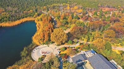 初冬的泉山森林公园景美怡心,图为市民们在如画美景中游玩。张耀文 康璐晨摄