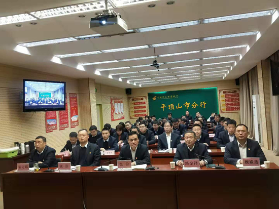 12月4日,邮储银行平顶山市分行在多媒体会议室召开“ETC冲刺十五天暨旺季重点业务大储备动员会”,市分行全体党委参加了会议,县(市)支行以视频形式同步参加。