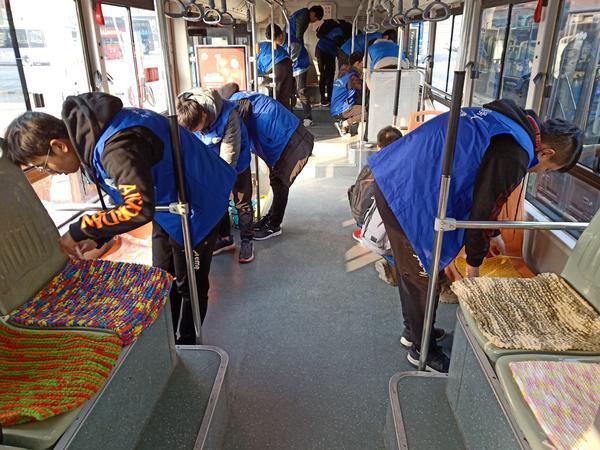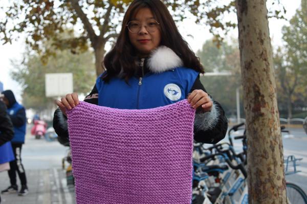 据现任小水滴志愿者服务队队长李小龙称,今年他们这个团队一共织出围巾220条,坐垫120块,围巾除了发放给环卫工人外,还有一部分送给了在医院治病的困难患者,剩下的送给大学周边的农民工,编织的120块坐垫,送到了郑州公交三公司906路公交车上,直接铺在座位上。