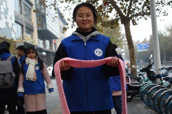 12月7日,尽管郑州的天气越来越寒冷,但总有一些热心人给这个城市带来温暖。今天凌晨5点,华北水利水电大学小水滴志愿者服务队第七任队长李小龙,带领20多名志愿者来到了位于郑州东风路上的免费爱心粥屋,要将他们亲手织成的120条围巾送给在此就餐的一线环卫工人。