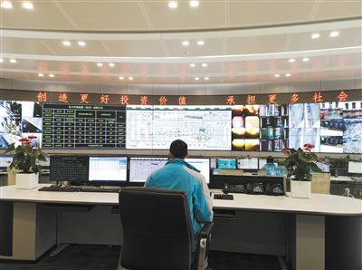 杭州九峰垃圾焚烧发电厂中控室,工作人员通过电子屏幕实时监控各个区域。