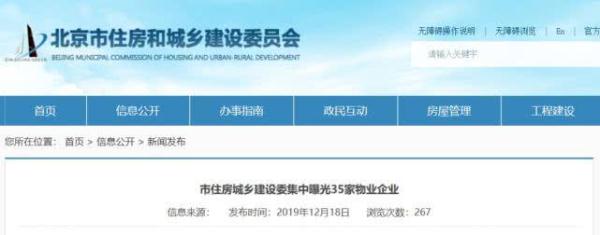 12月18日,北京市住房城乡建设委集中曝光了北京35家物业企业,并计入企业不良行为记录。