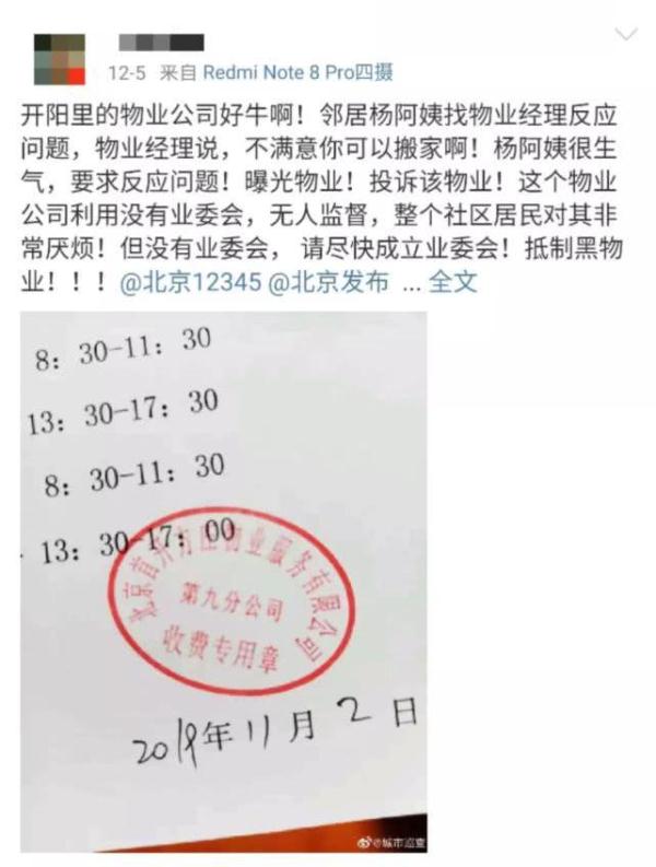 在微博上,也有网友@北京12345进行曝光。