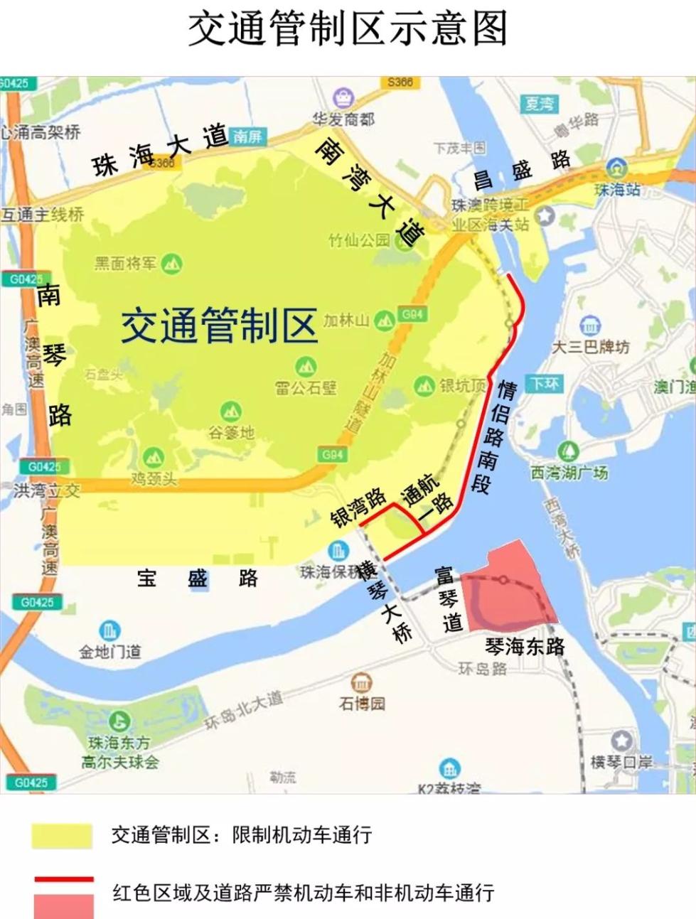 12月22日17时至23时 ,珠海大道(南琴路口至南湾大道路口段)以南、南琴路(珠海大道路口至宝盛路口段)以东、宝盛路及情侣路南段(横琴大桥至湾仔中学路口段)以北、南湾大道(珠海大道路口至湾仔中学路口段)以西区域及昌盛路以南区域 为交通管制区,将采取禁止通行、单向通行等临时交通管制。