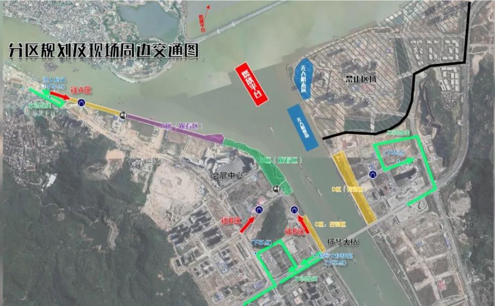 B区 观众可前往横琴大桥侧 乘坐“横琴大桥侧-华发新城-体育中心南”公交专线 离场。