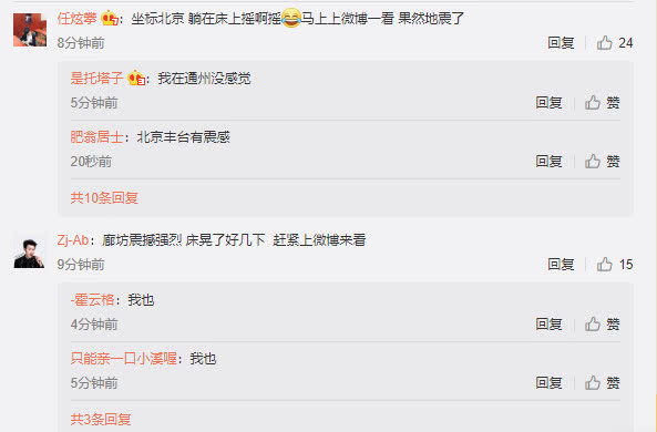 北京、河北等地网友表示有震感。