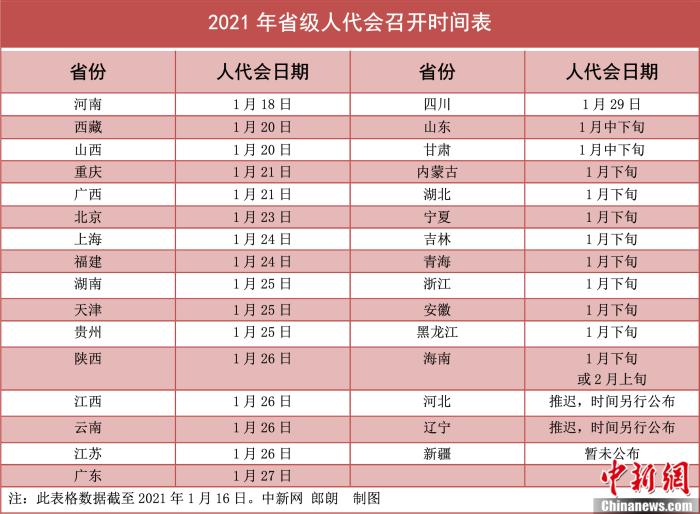 例如,1月11日,河北省决定推迟原定于1月25日召开的省级人代会,具体开会时间另行决定。随后,辽宁省也宣布,适当推迟召开辽宁省第十三届人民代表大会第五次会议,具体开会时间另行决定。