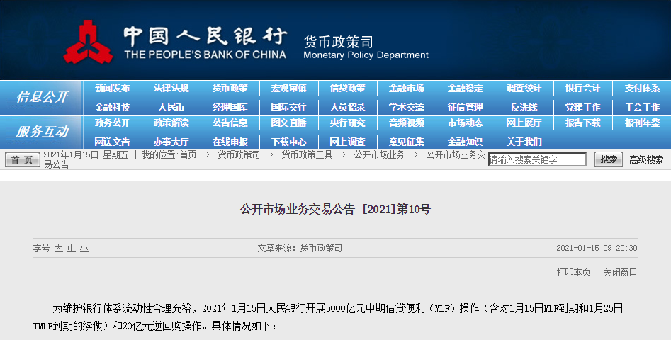 1月15日,央行开展5000亿元中期借贷便利(MLF,俗称麻辣粉)操作,中标利率维持在2.95%,已连续10个月保持不变。