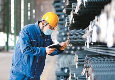 近年来,河北钢铁集团宣钢公司加快新旧动能转换,引领钢铁产业实现创新、绿色、高质量发展。图为日前该公司技术人员在检查螺纹钢质量。