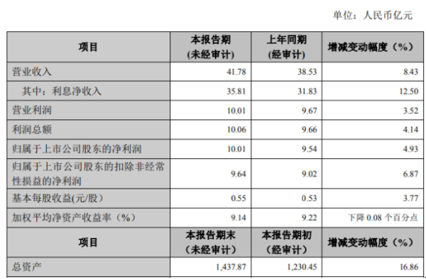 公告显示,张家港行总资产为1437.87亿元,比本报告期初增长16.86%;基本每股收益为0.55元,上年同期为0.53元。