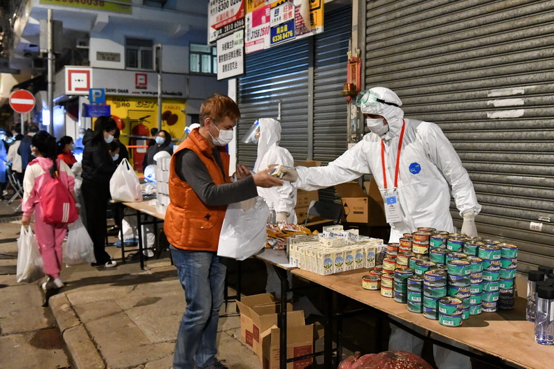香港特区政府提供了简单的食物,包括杯面、汤包(鸡或猪)、豆奶、火腿猪肉罐头、吞拿鱼罐头和瓶装水等,以及卫生用品,包括口罩、洗手液,供受检人士使用。考虑到“受限区域”内有不少少数族裔人士,政府还安排18名会讲尼泊尔语、乌尔都语或印地语的工作人员协助讲解安排。