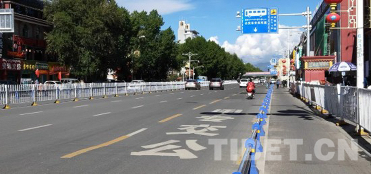 图为拉萨市公交专用车道 图片来源:西藏商报
