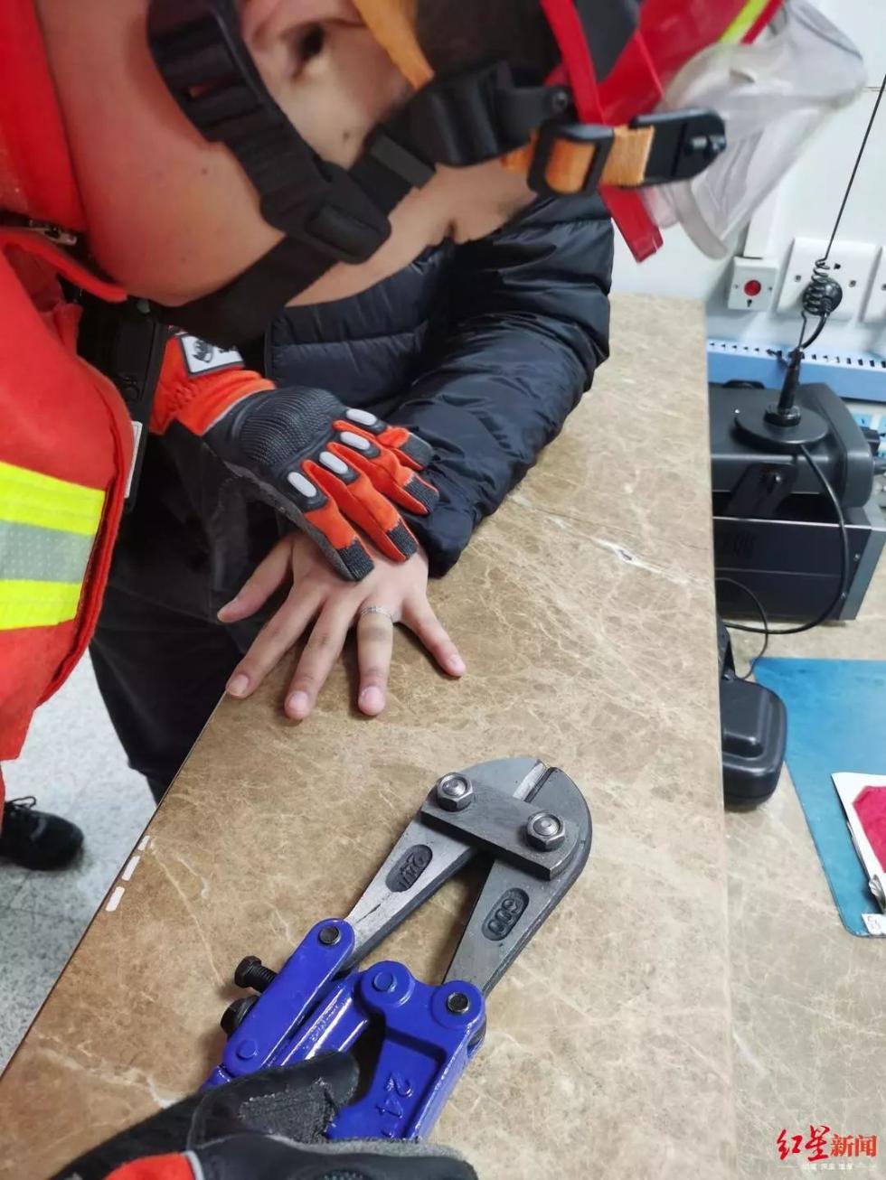 晚上9点多,石先生陪王先生赶到省医院急诊科就诊,接诊医生建议联系119先进行破拆。 随后,119消防员带着破拆设备赶到急诊科,经过10分钟的小心工作,成功安全地将王先生左手无名指的戒指破拆下来,经医生诊断,王先生左手软组织挫伤。