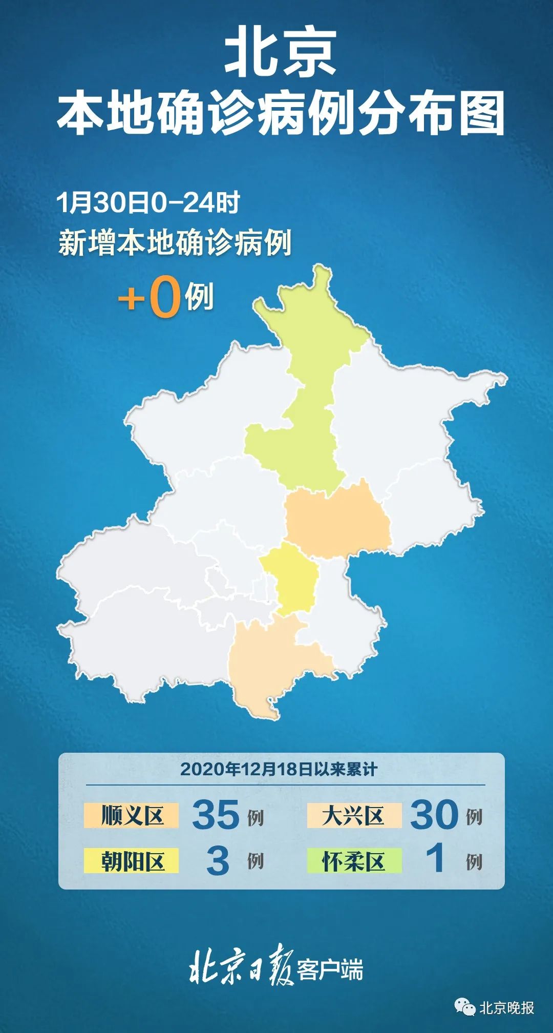 1月30日0时至24时,北京市无新增报告本地确诊病例、疑似病例和无症状感染者;无新增报告境外输入确诊病例、疑似病例和无症状感染者;治愈出院1例。