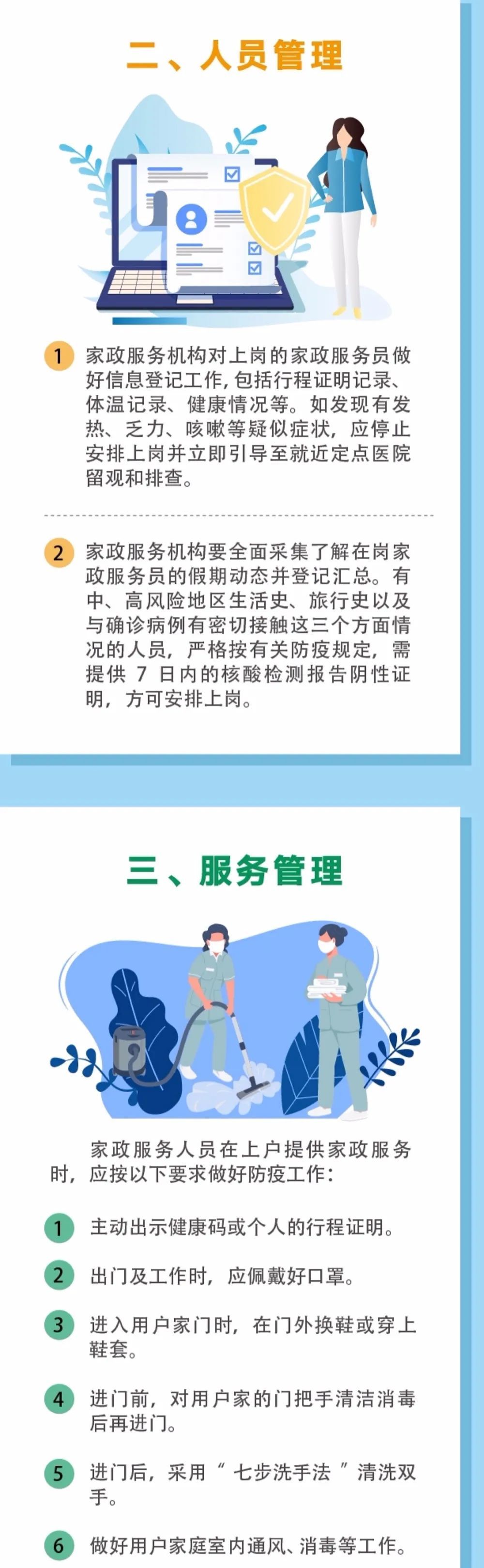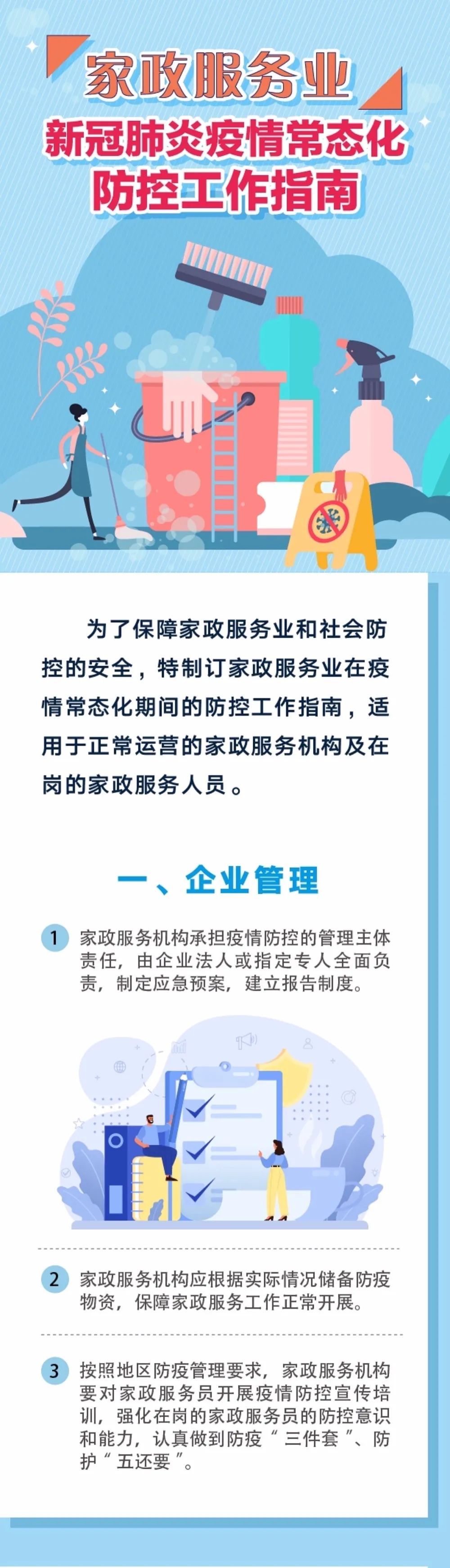 为做好家政服务业常态化疫情防控工作,结合本市实际,上海市家庭服务业行业协会在市商务委及市健康促进中心的指导下,发布《家政服务业疫情防控工作指南》图解版。