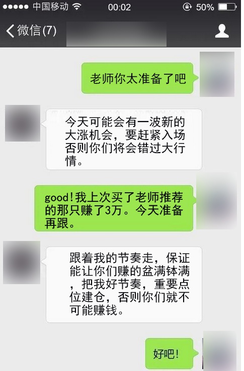 警方介绍,骗子前期寻找有购买股票或者期货意向的用户,再将用户拉入微信群,群内有所谓的“讲师、专家”推荐期货,成员晒“收益”。诱导受害者在虚假期货平台开户充值。“专家”在虚假期货平台的后台操控期货指数,指导受害者高买低卖,最终让受害者觉得不是被诈骗了而是炒期货亏损了,以此骗取被害人钱款。