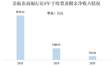 值得一提的是,近年来,余杭农商银行手续费及佣金净收入持续下滑。2018-2020年,手续费及佣金净收入分别为9079.13万元、2389.51万元及754.26万元。2020年,该行手续费及佣金净收入同比下降68.43%。