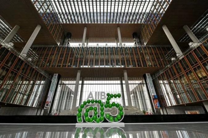 (亚投行总部大楼内景和庆祝正式开业五周年装饰 新华社记者 李鑫 摄)
