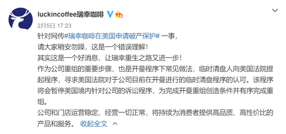 瑞幸微博:这其实是一个好消息