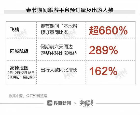 受“就地过年”政策影响,“本地游”、“周边游”火了。同程航旅数据显示,假期前六天周边游整体环比涨幅达289%,据飞猪平台数据,春节期间“本地游”预订量同比涨超660%。