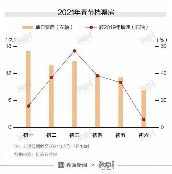 电影行业在今年春节迎来暴涨。据灯塔专业版数据,截至2月17日20时,包含预售票房在内的春节档票房已达到77.72亿。其中,大年初一近17亿的票房,打破中国电影单日票房记录,刷新全球单一市场单日票房纪录。