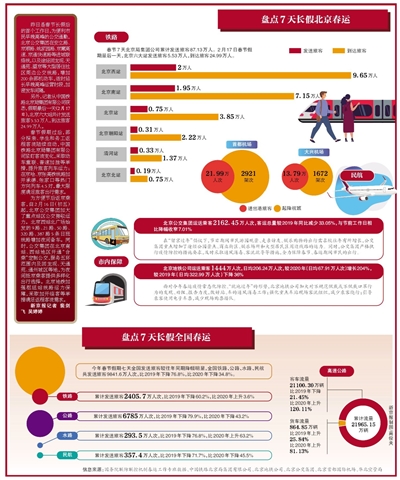 另外,记者从中国铁路北京局集团有限公司获悉,假期最后一天(2月17日),北京六大站共计发送旅客5.53万人,到达旅客24.99万人。