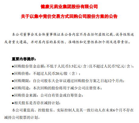 至于另一条公告,则披露了公司计划以集中竞价交易的方式回购公司股份,回购金额上限7亿元、回购价格上限20元/股,回购期限不超过12个月,本次回购的股份将用于减少公司注册资本。