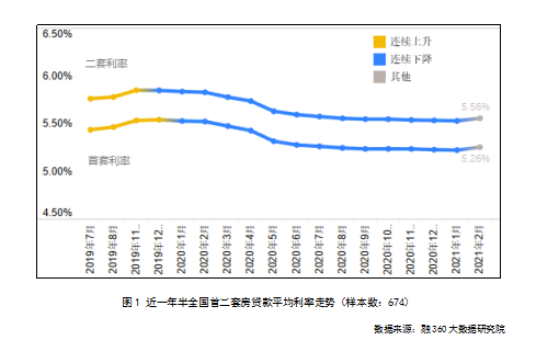 22日,中国吉林网记者从融360大数据研究院发布的“2月中国房贷市场报告”中看到,该院对全国41个重点城市674家银行分支机构房贷利率的监测数据显示,2021年2月(数据监测期为2021年1月20日-2021年2月18日),全国首套房贷款平均利率为5.26%,环比上涨4BP;二套房贷款平均利率为5.56%,环比上涨3BP。