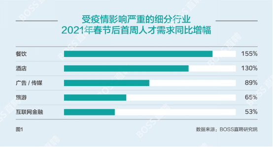 “过去的2020年,宏观环境存在较大的不确定性,就业市场出现了‘人才企业双观望’的情形,随着形势进一步明朗,在2021年人才跳槽与企业招聘的需求双双迎来爆发”, BOSS直聘研究院院长常濛认为,受益于国内疫情防控取得的成就,2021年春季就业市场承接了去年市场压抑的需求,迎来“补偿性求职招聘”的现象。
