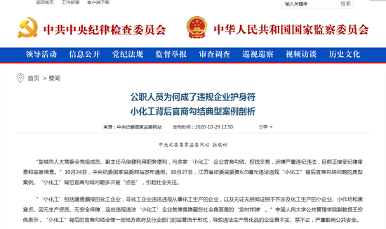 中纪委则将马俊健当做了小化工背后官商勾结的典型案例,指出基层小化工案件中,“熟人社会”现象明显,借由公权力或影响力干扰执法时有发生。同时,行业壁垒高、人员流动哨,也成了化工各领域容易滋生腐败问题的重要诱因。
