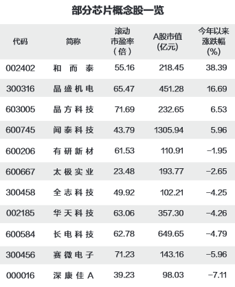 47只业绩增长的芯片股中,数据宝统计业绩增幅不低于30%、滚动市盈率低于80倍的股票,共21只。