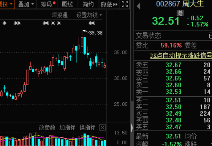 周大生此前股价表现较为强势,2月份一度创出历史新高,近期表现相对抗跌,上周跌超8%,本周小幅上涨。