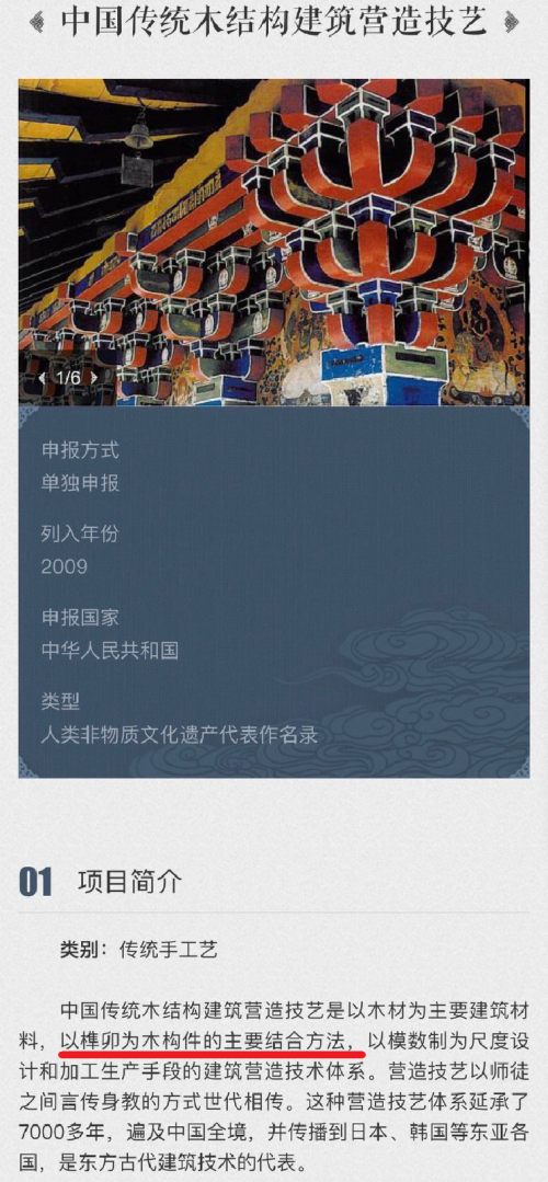 在中国非物质文化遗产网中,这项内容也有意思相同的描述,并明确提到了了“榫卯”。