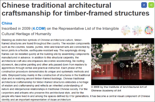 联合国教科文组织网站对“大木匠与传统的木结构建筑艺术”的介绍
