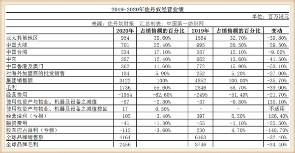 “休闲装鼻祖”佐丹奴国际日前披露截至2020年12月31日为止的2020年年报,报告期内,公司实现营业收入31.22亿港元,同比下降约35.66%,归属于母公司的净利润亏损1.12亿港元,而去年同期则为盈利2.3亿港元。